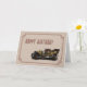 An illustration of an old vintage car with the words Happy Birthday at the top. Blank inside to add your own words.