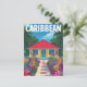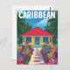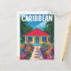Escape to a tropical paradise with this vibrant, vintage-style postcard. The artwork features a classic Caribbean house with a bright red roof and blue accents, surrounded by a lush garden of colourful flowers and towering palm trees. This stylised illustration evokes a sense of island charm and is perfect for a souvenir, a note to a friend, or as a beautiful piece of art for your home.