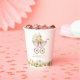Charming vintage carriage paper cup featuring soft yellow florals, blush bow accents, and elegant personalization. A beautiful touch for a timeless baby shower theme.