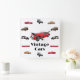 This unique clock with the images of classic cars of the distant past on the face will make an ideal gift.