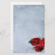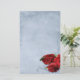 Elegant vintage cascade blue wedding stationery design featuring decorative corner scrolls on the top and bottom with a photo of three red roses in the lower corner. The background is given a textured grunge application for an antique paper look. This design comes in several ready made backgrounds. This design also comes on many other stationery products to suit all your wedding set needs.