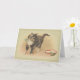 Retro / Vintage Cat note card. Adorable cat in a blue ribbon staring at a little frog! Perfect for cat lover!