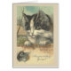 A vintage illustration of a cat peeking over a brick wall and a little mouse peeking out of a mouse hole saying to the cat, "Are you waiting for me?" The card is blank inside for your own message.