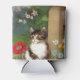 Vintage Cat Illustration with Spring Flowers Can Cooler