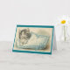 Victorian / Vintage note card. Adorable black and white kitten on a blue and white pillow! Perfect all occasion note card for cat lovers!