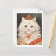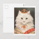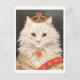 This is a reproduction of a vintage postcard showing a white cat dressed as a queen.