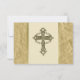 A striking response card featuring a vintage cross and background image of old parchment style paper.