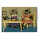 A vintage tinted photograph of two cats in dresses sitting at a dining room table having a breakfast of pancakes and tea. American photographer Harry Whittier Frees (1879-1953) was famous for dressing animals in clothing and posing them in human situations then photographing them. Some of his photos had captions, but most did not. This card is blank inside for your own message.