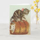 Vintage / Retro Cats and Kittens Note Card. Adorable kittens playing with a haystack. White cat is rolled up while tabby kitten sits on the haystack! Adorable Vintage cat note card! Sweet Retro kitten note card!