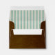 This vintage style, charming design features an aged, textured, and distressed chocolate brown outside, while the printed inside is of bold vertical blue and cream stripes pattern, giving the envelope a fanciful, stylish feel. The front has a ticket-like outline framing your name(s) and return address so guests can mail the RSVP back to you. This envelope was designed for a matching wedding invitation response card.