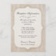 This design features a dusty cream striped background, and a simple, elegant cut-out cream frame placed over a darker cream ribbon. The text alternates between classic Garamond and script wedding fonts, with an added script flourish for style. The design has been given a distressed, aged feel to complement the vintage design. A custom monogram initial in its own, smaller frame ties the back of the invitation card into the overall design. These invitations are classic but not overly formal, exuding a vintage, old-fashioned charm with a contemporary sweetness and style.