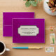This vintage style, charming design features an aged, textured, and distressed bright aubergine purple outside, while the inside is of vertical dark ivory and cream stripes, giving the envelope a fanciful, stylish feel. The front has a ticket-like outline framing your name(s) and return address so guests can mail the RSVP back to you. This envelope was designed for a matching wedding invitation response card.