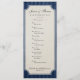 This design features a dusty navy blue striped background, and a simple, elegant ticket-like cream frame. The text alternates between classic Garamond and script wedding fonts, with an added script flourish for style. The design has been given a distressed, aged feel to complement the vintage design. These wedding programs are classic but not overly formal, exuding a vintage, old-fashioned charm with a contemporary sweetness and style.