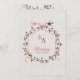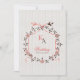 Customisable wedding invitation featuring a vintage illustration of cherry blossom with ribbons and love birds on coral pink / peach, brown and cream.