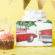 Vintage Chevy with Christmas Tree on top wrapping paper. White background. Red and White Car.