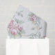 Lovely and elegant restored French-style vintage pattern featuring pastel pink roses with green and gold foliage and vines intertwined with a subtle light blue and antique white striped background.