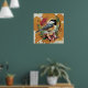 The hand-drawn details of the bird and florals exude a sense of timeless elegance, while the bold splashes of paint bring a contemporary, artistic flair.