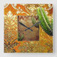 Vintage Chinese Cactus & Geometric Motif Square Wall Clock