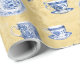 Vintage Chinoiserie Blue White Dishes Gold Wrapping Paper
