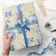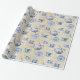 Elegant vintage style blue white teapots, tea cups and plates on antique faded damask background make a lovely and elegant all occasion wrapping paper.