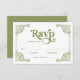 An elegant RSVP card featuring a whimsical Chinoiserie frame and soft olive green tones.