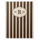 Vintage Chocolate and Cream Stripes Monogram Notebook