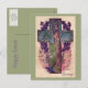 This old-fashioned Easter postcard shows a tree within a cross surrounded by violets, lilies, and the words "Easter Greetings."