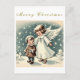 Customisable Vintage Christmas Angel and Child Flat Card.