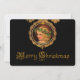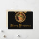 Striking design featuring a golden-haired cherub wearing a garland of holly in an ornate golden frame with gold holiday text on black background. Complementary image on reverse with customisable text.