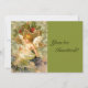 Personalised Christmas angel invitations-Vintage, classic Christmas angel design- A curly haired blonde angel is wrapped in fragile golden fabric. She is surrounded by purple and blue flowers and above her are holly berries and leaves. Behind her is a gold star. "You're Invited" is printed in matching green letters on the front of these angel invitations or announcements with coordinating green. Enter your own personal information on the other side. Change the text colour, font style, or wording if you like. The current wording is for a Christmas party invitation.