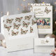 Vintage Christmas Butterfly envelope. Spread the magic of the holiday season with our customisable vintage Christmas butterfly envelope,featuring beautiful holiday butterflies on the inside flap. This timeless design blends the elegance of nature with the warmth of holiday traditions, creating a personalised keepsake that captures the beauty of your cherished memories. Perfect for sending love and joy to family and friends this Christmas! Easy to edit with your name and address.