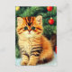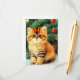 Enclosure Cards featuring a vintage Christmas cat! An orange kitty with black stripes sits in the snow. Behind the cat is a Christmas tree with red and yellow ornaments. Also on the snow is a red present. A perfect gift for the Christmas season and cat lovers!