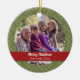 This criss-cross check pattern features vintage Christmas colours against a green background. There is a vintage red colour band across the bottom. The current design includes the text "Merry Christmas" in the middle of the band including your family name and the year. The text colour is cream. This is a template for you to customise in your own way. This personalised photo ornament makes a great gift to a loved one or as a yearly keepsake for yourself.