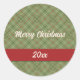 Vintage Christmas Check Classic Round Sticker