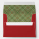 Decorate those amazing Christmas cards with a matching envelope! This envelope design features a lining with a vintage criss-cross Christmas pattern against a green background. The outside of the envelope is solid red. The flap on the back of the envelope has a return address template. The colour of the text is cream.