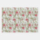 These fun Christmas wrapping paper sheets have a vintage Nordic folk art style, watercolor art illustration pattern of evergreen branches and winter foliage; cute, snowflake, heart, and horse Xmas cookies; and retro red hot cocoa mugs. Perfect for everyone on your gift list, family, friends, and kids will love this Scandinavian inspired, whimsical holiday gift wrap.