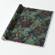This luxurious wrapping paper features a dark, moody background with a swirling, abstract pattern in shades of teal and deep blue, reminiscent of stormy seas or celestial nebulae. Scattered throughout the design are clusters of festive elements, including sprigs of holly with deep red berries, pinecones, and delicate white berries or blossoms. Hints of gold glitter catch the light, adding a touch of elegance and sparkle. The overall effect is sophisticated and enchanting, perfect for holiday gifting with a touch of mysterious allure.