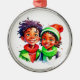 Pretty personalised Christmas ornament with a cute retro elves of colour. The back can be personalised with a custom message.