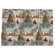 This wrapping paper features a repeating, seamless pattern of a sparkly, vintage winter scene. The design depicts a snowy landscape with rolling hills, evergreen trees dusted with snow, and a quaint red church with a steeple nestled in the background. The foreground is dominated by large, frosty tree branches, adding a sense of depth and texture. The overall effect is charming and traditional, reminiscent of a classic Christmas card, with a subtle sparkle to enhance the festive, wintry feeling.