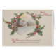 Victorian / Vintage Christmas greeting card. Lovely winter scene framed by holly branches. Best Christmas Wishes! May Christmas with its promised joy, All care within your heart destroy!