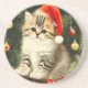Sandstone Coaster featuring a vintage Christmas kitten! This adorable kitty wears a Santa hat and sits in a Christmas tree decorated with ornaments. A wonderful gift for the Christmas season and cat lovers!