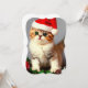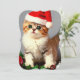 Card featuring a vintage Christmas kitten wearing a Santa hat! This cute kitty poses with Christmas ornaments and holly. A cheerful gift for the Christmas season and cat lovers!