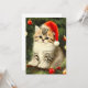 Card featuring a vintage Christmas kitten! This adorable kitty wears a Santa hat and sits in a Christmas tree decorated with ornaments. A wonderful gift for the Christmas season and cat lovers!