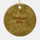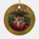 Ornate vintage-inspired Christmas ornament photo frame on gold damask will turn your treasured photo into a new holiday heirloom. Optional text on reverse.