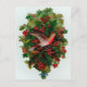 This beautiful vintage postcard features a little bird perched inside a bushel of holly and ivy. This adorable postcard is sure to bring a smile and cheer to hearts and homes.