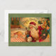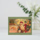 Merry Christmas is displayed. The vintage Christmas image is set against a green ornamental Christmas background to complete this lovely postcard.
