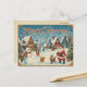 Colorful vintage Christmas postcard featuring a snowy village, Santa Claus, and a cheerful snowman. Perfect for sending festive greetings or as a collectible holiday keepsake.
