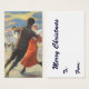 Vintage illustration Merry Christmas holiday sports image featuring a man and woman in love ice skating. Love and romance on Christmas Day. Very romantic!