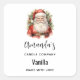 Candle, soap, or kitchen product stickers with a cute vintage style watercolor image. Santa Claus in his red suit with jolly cheeks and a smiling face. Surrounded by pine and holly.