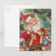 Vintage 1950 Santa With Reindeer Holiday Postcard.